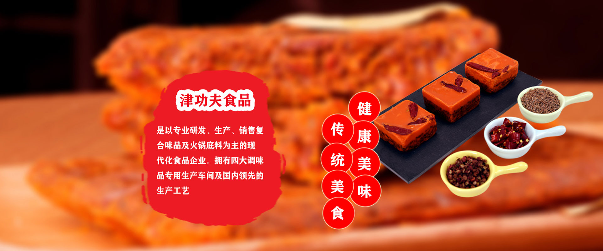 廣東津功夫食品有限公司,位于廣東省肇慶市國家高新區,占地面積約2.5萬平方米,是以專業研發、生產、銷售復合調味品及火鍋底料為主的現代化食品企業。      "津功夫"為公司注冊商標。公司擁有四大調味品專用生產車間及國內領先的生產工藝;裝備有反應釜、電磁炒鍋、天然氣炒鍋、蒸煮生產線、各型號全自動包裝機、冷封生產線等先進生產設備,年生產能力達2萬噸;配備有微檢、重金屬、金檢、水分、折光等檢測設備。        公司依照國家食品安全法,采用GMP及ISO管理標準,已先后通過ISO-22000質量管理體系認證、HACCP認證。        公司研發團隊由公司創始人親自帶隊,立足當下,不斷創新,將在調味品行業20余年的潛心研究成果變為現實,精品輩出,為客戶創造更多、更好的價值。公司以川味調味品為根,以客戶需求為本,開發了復合調味品及火鍋底料兩大板塊的系列產品。復合調味品板塊涵蓋: